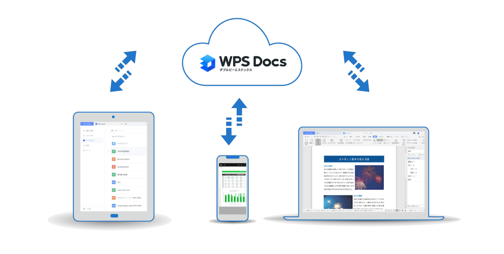 「WPS Docs」は、Windows版・Mac版・アプリ版として提供している総合オフィスソフト「WPS Office」をクラウド化したもの。時間や場所、アクセス方法にとらわれることなく、自由なファイル共有・編集といったコラボレーションを実現するという。